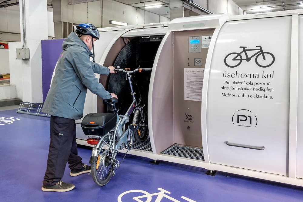 Další bezpečnostní box umístěný v garážních prostorách Centra Chodov disponuje zásuvkou 230 V pro dobíjení elektrokol. Za uskladnění kola zaplatí zákazníci 5 korun za hodinu.