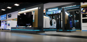 Druhým oceněným projektem, a to v kategorii elektronika a IT produkty, se staly shop in shopy pro přední celosvětově působící společnost Hisense International, která je výrobcem smart technologických produktů. V České republice je značka Hisense zastoupena od roku 2015. Vskutku fascinující expozici dopřála svým produktům v showroomu v Alze v Chrášťanech. Všem prezentovaným spotřebičům ohromně svědčí místo na vyvýšeném podstavci, kde se s grácií mohou předvést v nejlepším světle. Samozřejmostí jsou informace o jednotlivých spotřebičích přehledně zobrazené na panelech u každého z nich. Jedná se hned o několik exkluzivních ostrůvků a výstavní stěnu, na které se vyjímá světelné logo značky. Tu pravou dávku elegance dodává expozici tmavě šedé lamino v matném provedení v kombinaci s dřevem v dekoru dubu Charleston. Třešničkou na dortu tohoto prémiového provedení jsou světelné vodicí lišty v tyrkysové barvě, která je barvou tohoto brandu.