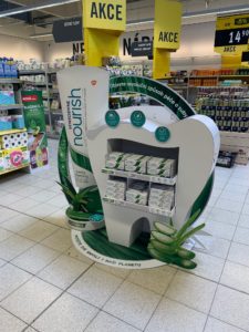 První ocenění získalo Dago v kategorii drogerie a kosmetika, a to za realizaci shop in shopů pro novou řadu zubních past Sensodyne Nourish společnosti GlaxoSmithKline. Cílem těchto shop in shopů je oslovit mladší generaci jak prostřednictvím hravého vyobrazení modelu zubu i produktu samotného, tak věcnou a jasnou komunikací všech klíčových benefitů. Na motivu kruhu, který vystavení lemuje, se nachází jednoduchá komunikace sdělující v kostce vše důležité. Pro mladou generaci je totiž důležité nejen jejich zdraví, ale i čas. Zdlouhavé zkoumání benefitů produktu tak není na pořadu dne. V souladu s hodnotami a smýšlením této cílové skupiny potěší zejména fakt, že jak krabička, tak i tuba a víčko jsou z recyklovatelného materiálu a samotná pasta je veganská. Jak napovídají zobrazené zelené elementy rostlin, nyní ji lze pořídit ve dvou nevšedních, překvapivých příchutích: aloe vera a citronová tráva.