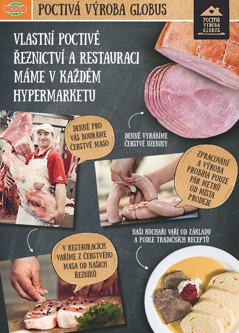 „Dává však smysl i to, že půjdeme ještě dál. Přes sedm set produktů vyrábíme v každém našem hypermarketu čerstvé každý den a dle vlastních receptur. Jejich kvalitu máme plně pod kontrolou od pořízení suroviny přes zpracování až po jeho finální podobu. A za každý tento náš výrobek pod označením Poctivá výroba Globus stoprocentně ručíme,“ říká k důvodu vzniku označení tisková mluvčí Globusu Pavla Hobíková a dodává, že Poctivá výroba Globus není jen nová značka. „Jde o pojmenování toho, co nás odlišuje od konkurence. To, že máme skutečné řezníky, uzenáře, cukrářky, pekaře a kuchaře, kteří vše vlastníma rukama zpracovávají denně čerstvé od základu, což není reklamní sdělení, ale fakt.“