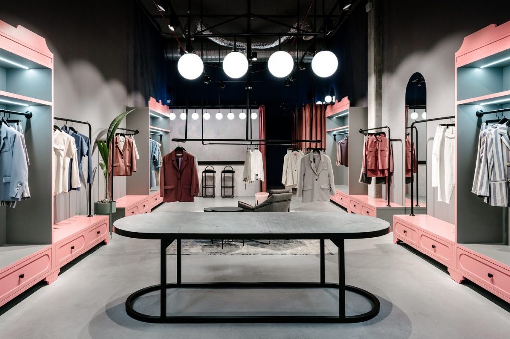 Návrháři prodejen stále více využívají barevné prvky v interiérech. Barvy jako zelená a růžová spolu s teplými pastely vytvářejí pozitivní atmosféru. Dřevo je v obchodech stále oblíbeným materiálem. V kombinaci s kovem a betonem komunikuje modernost a může být součástí průmyslové atmosféry. Podlahové krytiny, obklady stěn a tmavé dřevo jsou spojeny s rostlinami, nábytkem do obývacího pokoje a uměleckými díly, aby vytvořily útulné prostředí, které vybízí zákazníky zůstat a bavit se.