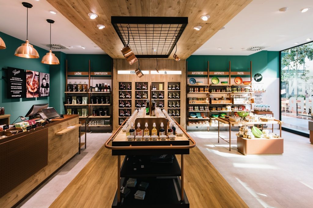 Obchody se staly hybridními prostory, které lze využít k různým účelům. Prodejní plochy jsou rozšířeny o kavárny nebo výstavy. Oddělení potravin může zahrnovat restaurace nebo poskytnout prostor pro kurzy vaření nebo ochutnávky vín. Takové nabídky se staly nedílnou součástí designu obchodů.