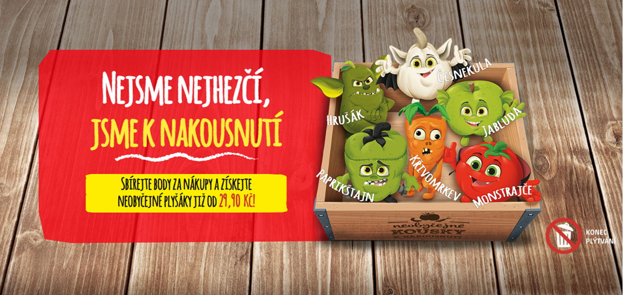 Navíc PENNY také připravilo zákaznickou věrnostní akci Neobyčejné kousky, ve které nabízí plyšové hračky stvárňující neestetické potraviny, které sice nemusejí vypadat exkluzivně, ale chutnají stejně jako estetické kousky. Zákazníci tak mohou získat plyšáky se zajímavými názvy: Hrušák, Česnekula, Paprikšajn, Křivomrkev a Monstrajče.