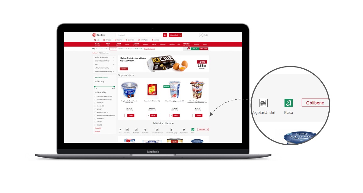 Nově představené preferenční filtry umožní zákazníkům na stálo zobrazit na celém webu Košík.cz jen ty potraviny, které značku Klasa mají.