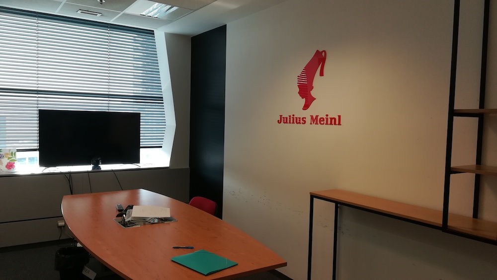 Designový meetingroom společnost Ross pro společnost Julius Meinl kompletně navrhla, vyrobila a zrealizovala. Po obvodu jedné stěny je umístěn dřevěný rám s integrovanými bodovými světly. Z rámu jsou spuštěny tři vyměnitelné obrazy. Na druhé stěně je poličkový set, který je kotven do stropu místnosti. Originální součástí meetingroomu je i černý wallwrap, na kterém je aplikována fólie popisná křídou. Stylové pracovní prostředí dotváří logo Julius Meinl z lesklého červeného perspexu.
