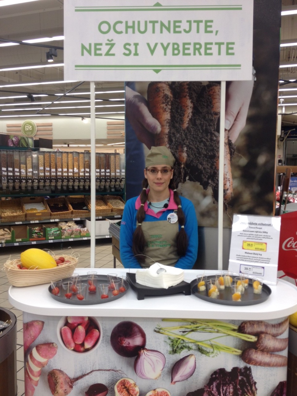 V oddělení ovoce a zeleniny bude každý všední den mezi 14:00 – 18:00 a v sobotních dopoledních hodinách ochutnávací stánek, kde zákazníci budou moci vyzkoušet vybrané ovoce a zeleninu dle sezony a  zároveň mohou získat recepty či tipy, jak nejlépe produkty upravovat.
