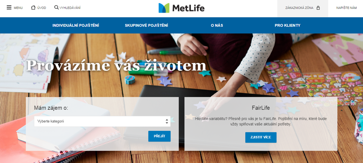 Pojišťovna MetLife patřící k největším světovým pojišťovacím domům spustila na konci loňského roku české webové stránky v novém designu. Ty odpovídají současným trendům on-line komunikace a internetového designu, také jsou uživatelsky přehlednější. Mají responzivní design, díky kterému se stránka přizpůsobí všem stolním i mobilním zařízením. Pro případné dotazy mohou návštěvníci využít kontaktní formulář, dostupná je rovněž zákaznická zóna.