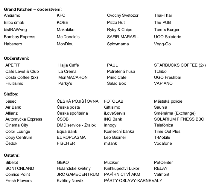 Níže naleznete seznam obchodních jednotek, jež nabídne nové Centrum Chodov již od října 2017.