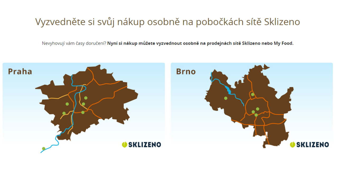 Český online supermarket Rohlik.cz v současnosti testuje nový model doručování objednávek. Jeho zákazníci v Praze a Brně si mohou své nákupy vyzvedávat i osobně v síti prodejen Sklizeno a My Food. Novinka je už v plném provozu, do 5. ledna 2018 ale bude probíhat v pilotním režimu.