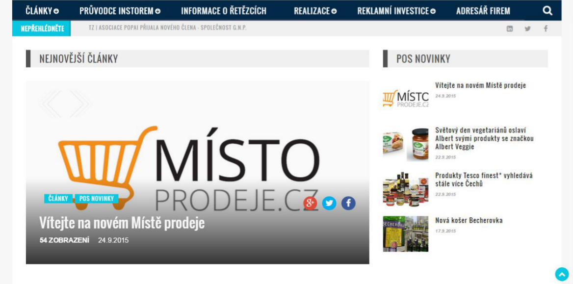 Dnešním dnem vstupuje odborný server Místo prodeje.cz, který přináší informace z oboru marketingu v místě prodeje, jak v rámci České republiky, tak i v zahraničí, do své další, vylepšené fáze, neboť zcela změnil svoji grafickou podobu a také strukturu jednotlivých svých kategorií.