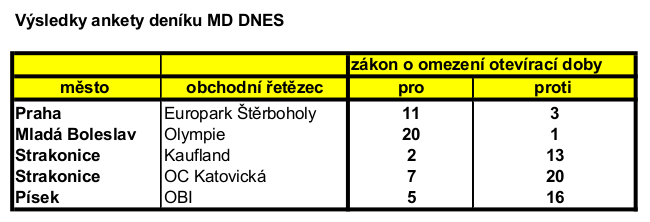 Podle ankety, kterou deník MF DNES uskutečnil o státním svátku 5. července, vadí nově přijatý zákon o uzavřených velkých obchodech během státních svátků více na venkově než ve městech.