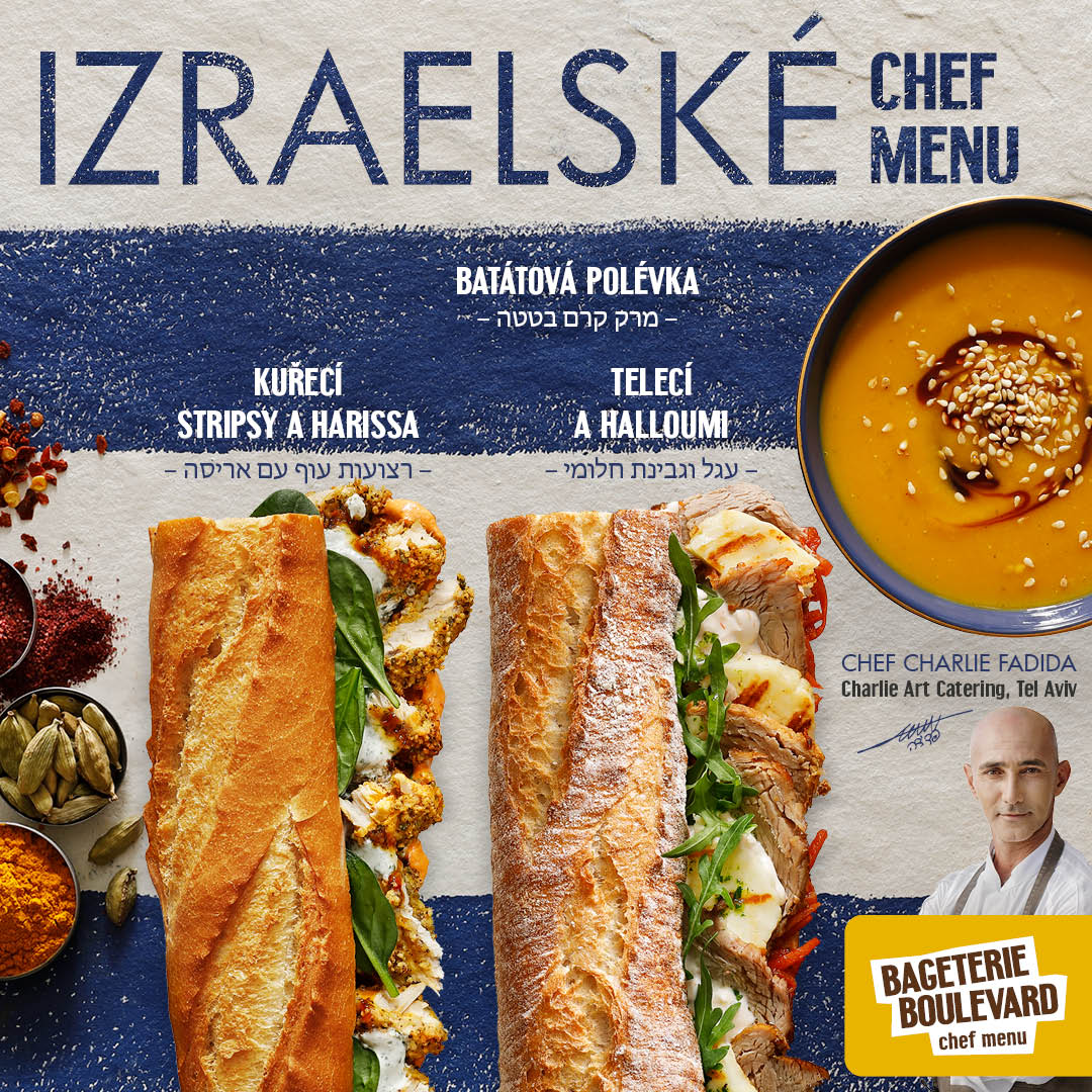Zákazníci Bageterie Boulevard možnost ochutnat nové sezónní Chef Menu, které pro ně sestavil přední izraelský šéfkuchař Charlie Fadida z Tel Avivu. V menu hrají prim chutě i suroviny typické pro izraelskou kuchyni. Kromě dvou různých baget a polévky se v rámci řady Balanced calories představí také vegetariánský burger a veganský wrap. Nové Chef Menu je dostupné na všech pobočkách Bageterie Boulevard. Jako první menu ochutnal velvyslanec Státu Izrael v České republice Daniel Meron.
