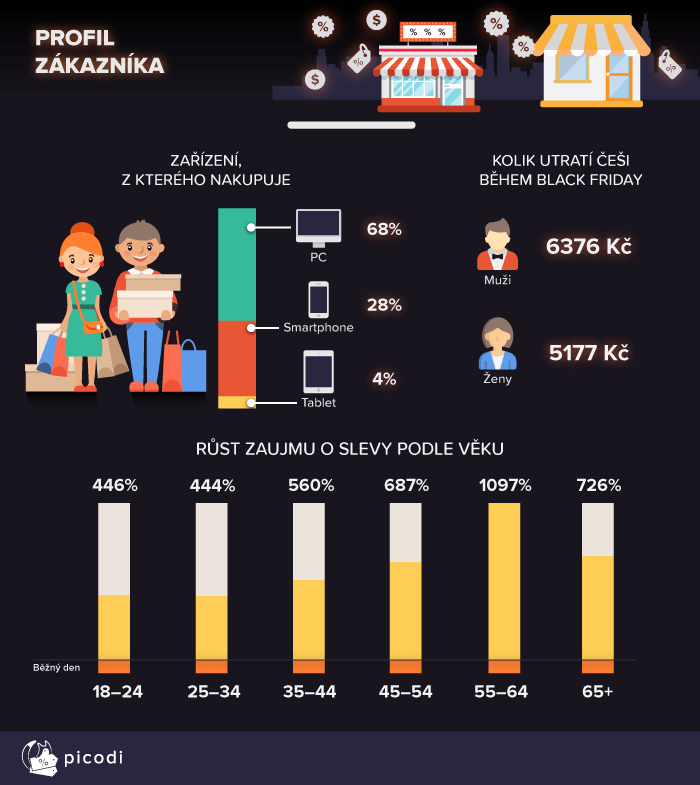 Tým analytiků Picodi.com těsně před zahájením Black Friday provedl průzkum a vypracoval dotazník, který byl následně vyplněn českými spotřebiteli. Výsledky výzkumu částečně odhalily, co můžete očekávat od letošní největší slevové akce roku. V reportu se dozvíte mj., zda věřit slevám v obchodech, jaký je zájem zákazníků o Black Friday a také kolik Češi plánují utratit během černopátkových výprodejů, které letos připadají oficiálně na 23. listopadu.