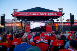 „Protože je značka Coca-Cola tradičně spojená se zábavou, společností přátel a pohodou, umístili jsme do fanzóny množství aktivit s hokejovou tematikou, které měly potenciál návštěvníky zabavit a zároveň budovat vztah ke značce,“ říká Dana Běloušková. Ve fanzóně si tak mohli návštěvníci zahrát například air hockey, hokejové piškvorky nebo PlayStation. S pomocí kamery 360° si pořizovali stylové video anebo například na simulaci samostatných nájezdů soutěžili o merch a nápoje z portfolia Coca-Cola. Současně se mohli zapojit se do soutěžního hokejového kvízu o další dárky.