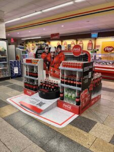 Kromě permanentních jsme také nachystali také kartonové POS média. Tady bylo především dbáno na snadnou sestavitelnost stojanů a jejich odolnost při manipulaci. V řetězcích Albert, Tesco, Kaufland nebo Billa čekají produkty z portfolia Coca-Cola HBC Česká republika na své fanoušky ve třech velikostních druzích stojanů, paletovém vystavení a shop-in-shopu. S těmito nepermanentními prostředky prodejní plochy se mohou nakupující potkat i na slovenském trhu.