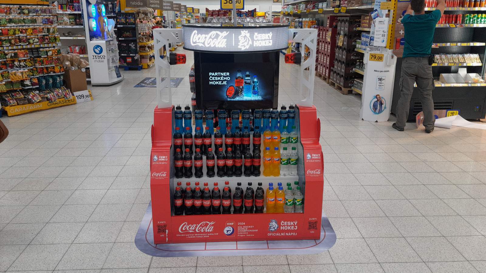 Coca-Cola je nápojovým partnerem českého hokeje, podporuje také ženský lední hokej i parahokej, ale především má nabitý marketingový kalendář s blížícím se Mistrovstvím světa. Šampionát letos v květnu proběhne v Praze a Ostravě a tak bude výbornou příležitostí pro domácí fanoušky užít si skvělého hokeje na té nejvyšší světové úrovni. Coca-Cola rozhodně velmi dynamicky a masivně přistoupila k předzápasové přípravě, pokud bychom takto přeneseně nazvali vizibilitu na prodejní ploše. Ve vypsaném tenderu na kreativní řešení POS nosičů nakonec uspěl náš tým DAGO, a to především díky originálnímu řešení celého setu vystavení, jemuž nechybí propracované detaily.