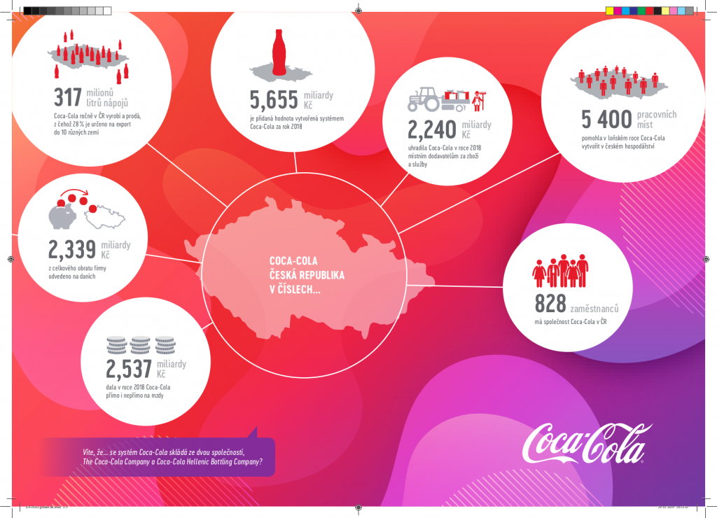 Coca-Cola v loňském roce přinesla české ekonomice více než 5,6 miliardy korun a zároveň podpořila více než 5 000 pracovních míst. Vyplývá to z nové unikátní studie o ekonomických a sociálních dopadech, kterou zpracovala nezávislá renomovaná poradenská společnost Steward Redqueen. Systém Coca-Cola zároveň oznámil další navýšení svých rekordních investic v České republice – do nejnovějších technologií plánuje do roku 2021 investovat přes tři miliardy korun.