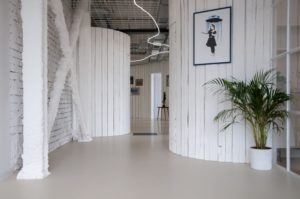 Unikátnímu prostoru je vlastní vzdušnost, dynamičnost, rozmanité struktury a recyklované materiály. Hlavní pracovní prostor je koncipovaný jako open space, ale přesto rozdělený do citlivě oddělených částí, ve kterých jsou místa jak pro početné pracovní týmy, tak i jednotlivce. Dominantní bílá barva pak jednotlivé prvky sjednocuje a zároveň dodává pocit lehkosti, otevřenosti a klidu.