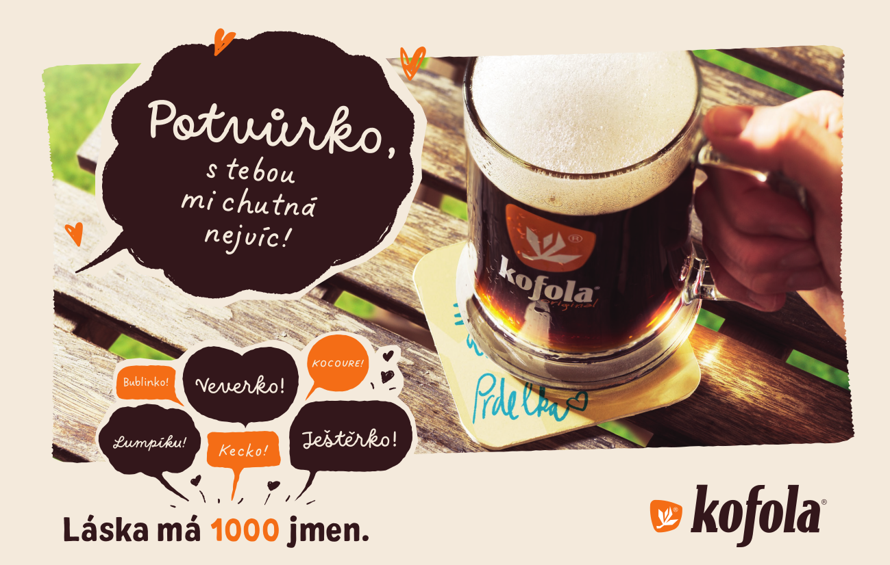 Kofola přichází s novou kampaní, již tradičně prostoupenou láskou. Značka dlouhodobě fandí zamilovaným a v aktuální kampani Láska má 1000 jmen rozvíjí motiv přezdívek, kterými se mezi sebou partneři oslovují. Láskyplná pojmenování mohou být něžná, vtipná a občas i trochu peprná. Vždy ale vyjadřují jedinečné pouto, které spojuje dva milující se lidi a dotváří příběh jejich lásky.