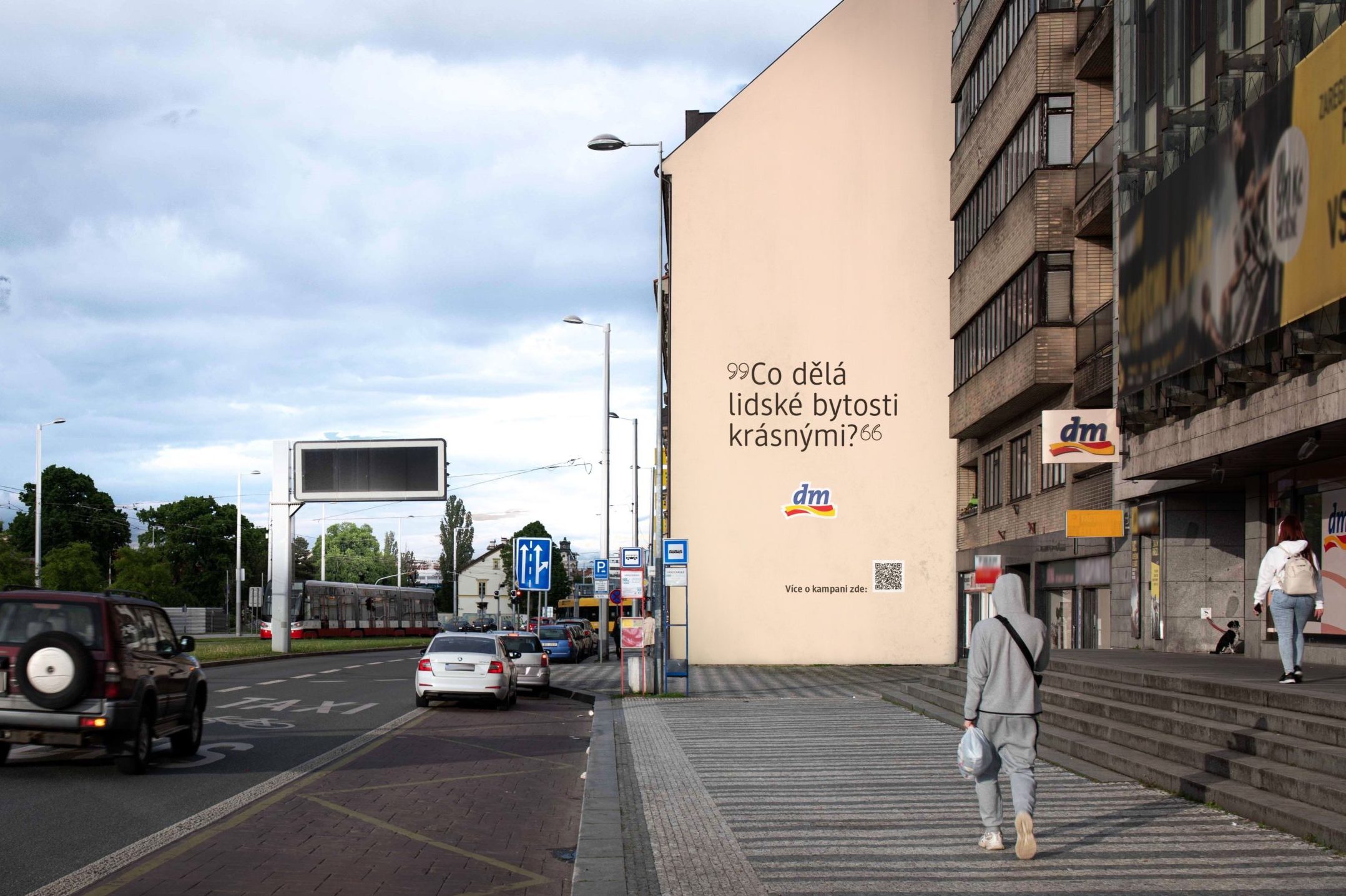 Co dělá lidské bytosti krásnými? Takovou otázku mohli v průběhu dubna vídat lidé procházející kolem vybrané pražské budovy v ulici Milady Horákové, v jejíž blízkosti sídlí prodejna dm. V květnu se tato plocha pod rukama ilustrátora Máry Čmáry promění v umělecké dílo. „Příroda vždy člověka inspirovala k velkým činům, proto v sobě návrh ukrývá i odkazy na slavné dílo renesančního malíře Sandra Botticelliho Zrození Venuše. Malba pro dm bude vyobrazovat ženu v laskavém objetí přírodou, s květinou kosatců obklopenou vodou,“ popisuje výtvarník Marek Kulhavý, který tvoří pod pseudonymem Mára Čmára.