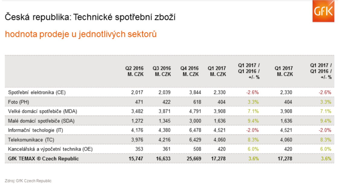 Růst trhu technického spotřebního zboží v České republice v prvním čtvrtletí roku 2017
