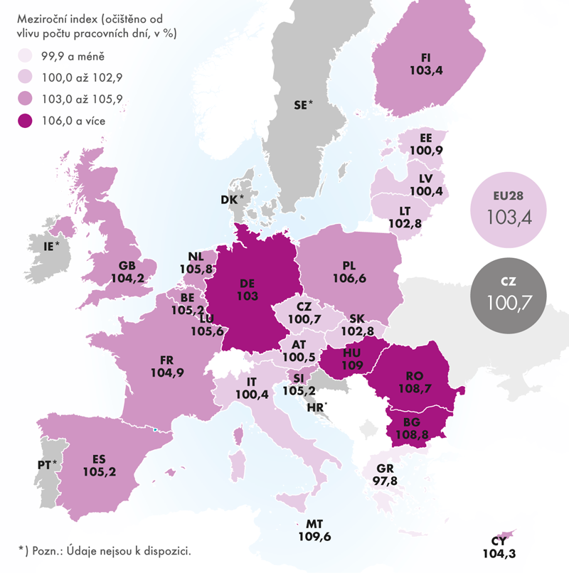 Česká republika tak zůstala pod průměrem evropské osmadvacítky, jejíž meziroční růst v tomto období činil 3,4 % (v době psaní článku chyběly údaje za Chorvatsko, Dánsko, Irsko, Portugalsko a Švédsko).