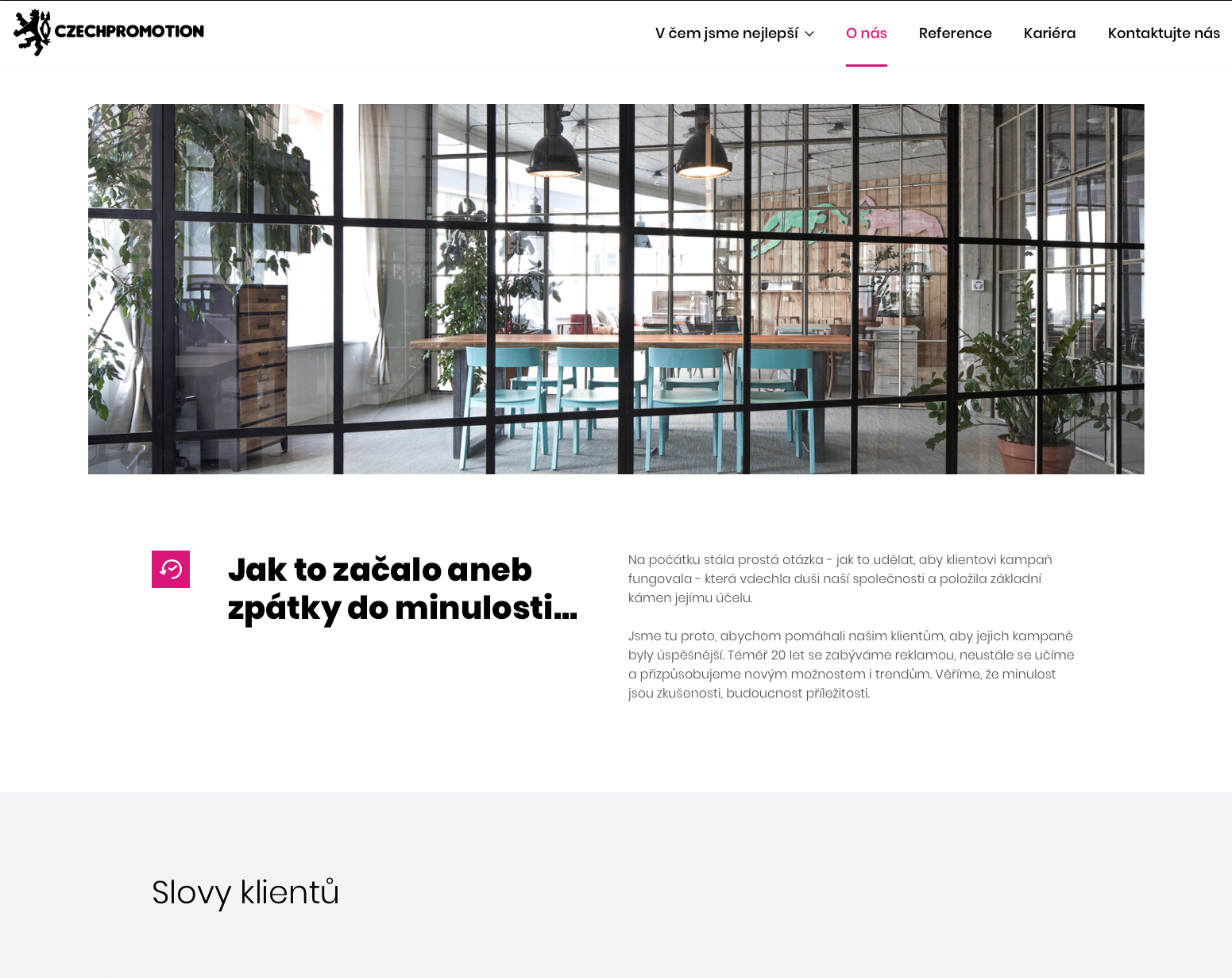 Chtěl jsem, aby stránky byly jednoduché, přehledné a vzdušné. Dneska je trend video, a ne moc textu. A to se myslím povedlo. Nejzajímavější jsou potom určitě případové studie a možná i referenční dopisy od našich klientů.