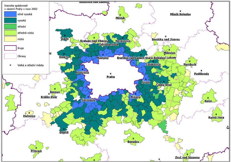 Při porovnání současného stavu se situací před 15 lety z roku 2002 je na první pohled jasné, že se zázemí velkoměst jako jsou Praha, Brno, Plzeň nebo Ostrava rozšiřuje. Ale nejen to, některá dříve významná spádová centra se dramaticky zmenšila např. Kladno, anebo ztratila význam (např. Beroun) na úkor řádově větších měst (Praha, Plzeň, a další). Obyvatelé ze vzdálenějších obcí, kteří nebyli v minulosti ochotni tolik pendlovat mezi obcí a centrem, již v současnosti tuto bariéru odstraňují, a to i přes ne zcela dokonalou dopravní infrastrukturu. Rozšiřující se zázemí velkoměst a rostoucí intenzita mobility obyvatel na větší vzdálenosti má za důsledek také jistý společenský fenomén – vylidňování klasického venkova a posilování trendu suburbanizace. V těchto suburbanizačních prstencích sice žije v současnosti více obyvatel než dříve, ti ale mají ekonomické a kulturní zázemí ve velkých městech a ve svých „venkovských“ domovech jen přespávají. Klasický „venkov“ disponující vlastním socioekonomickým zázemím nadále postupně mizí.