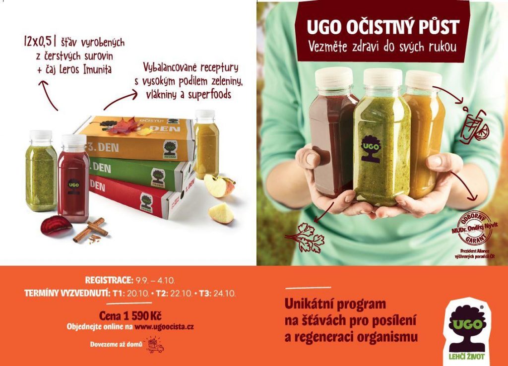 UGO opět startuje racionální program pro regeneraci organismu a podporu samočistící schopnosti těla, UGO Očistný půst. Je ideálním pomocníkem pro všechny, kteří si před podzimní a zimní virovou sezónou chtějí osvojit nebo zlepšit dodržování správné životosprávy. Důraz na prevenci je klíčovým stavebním prvkem pro posílení imunity.