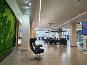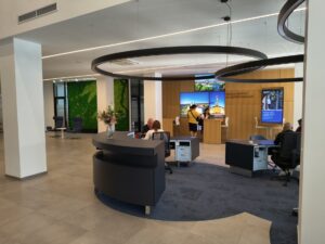 Olomoucká pobočka zaujala odbornou porotu především vyváženým propojením moderních technologií a lidského přístupu. Prostor působí otevřeně, přirozeně a přívětivě tj., čisté linie, světlé barvy a dostatek denního světla vytvářejí prostředí, kde se klienti cítí vítáni. Digitální LED obrazovky, samoobslužné zóny a tablety pro rozvoj finanční gramotnosti doplňují osobní přístup poradců, kteří klientům pomáhají zvládnout i nové technologie.