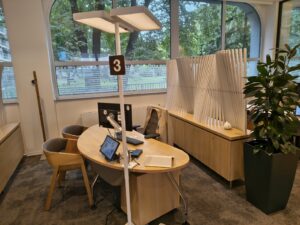 Odborné hodnotitele zaujala kombinace profesionálního prostředí, vysoké úrovně klientského servisu a důrazu na inkluzivní přístup. Pobočka je plně bezbariérová, což zajišťuje pohodlný přístup pro všechny zákazníky včetně osob s omezenou schopností pohybu. Moderní interiér s čistými liniemi, přírodními materiály a promyšleným uspořádáním podporuje příjemnou atmosféru a komfort klientů.