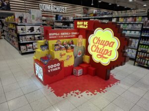 Léto je tradičně spojené se zábavou, radostí a hravostí. A právě takový je i shop-in-shop, který pro značku Chupa Chups v období letních prázdnin navrhla a realizovala přední instorová agentura POS Media. „Chtěli jsme zákazníky v supermarketech upozornit na to, že právě probíhá velká dvouměsíční soutěž, která vychází z naší celoroční globální idey: Life is a Game,“ říká Radek Klouček, Trade Marketing Manager CR/SR společnosti Perfetti Van Melle Czech Republic. „Součástí zadání byl také požadavek, aby byly ve vystavení přítomné prvky evokující oblíbenou hru Minecraft a gaming obecně.“