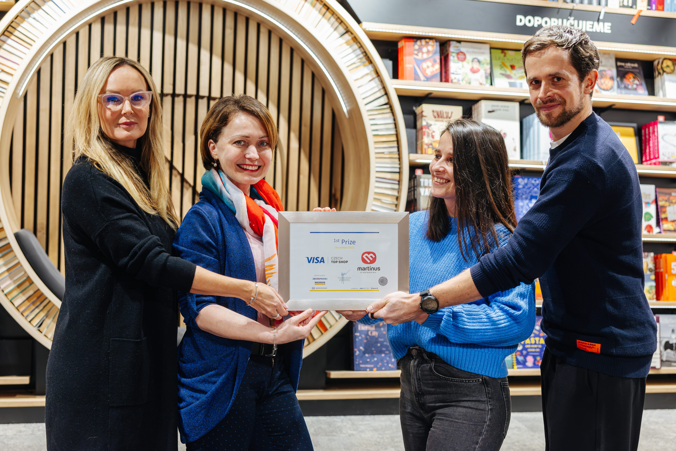 Slovenské knihkupectví Martinus, které provozuje řadu prodejen na Slovensku, vstoupilo i na český retailový trh. První českou pobočku v brněnském obchodním centru Velký špalíček ocenila odborná porota v prosincovém kole soutěže Visa Czech Top Shop jako nejlepší. Ocenění si vedení obchodu převzalo z rukou country manažerky Visa Czech Top Shop Markéty Němcové.