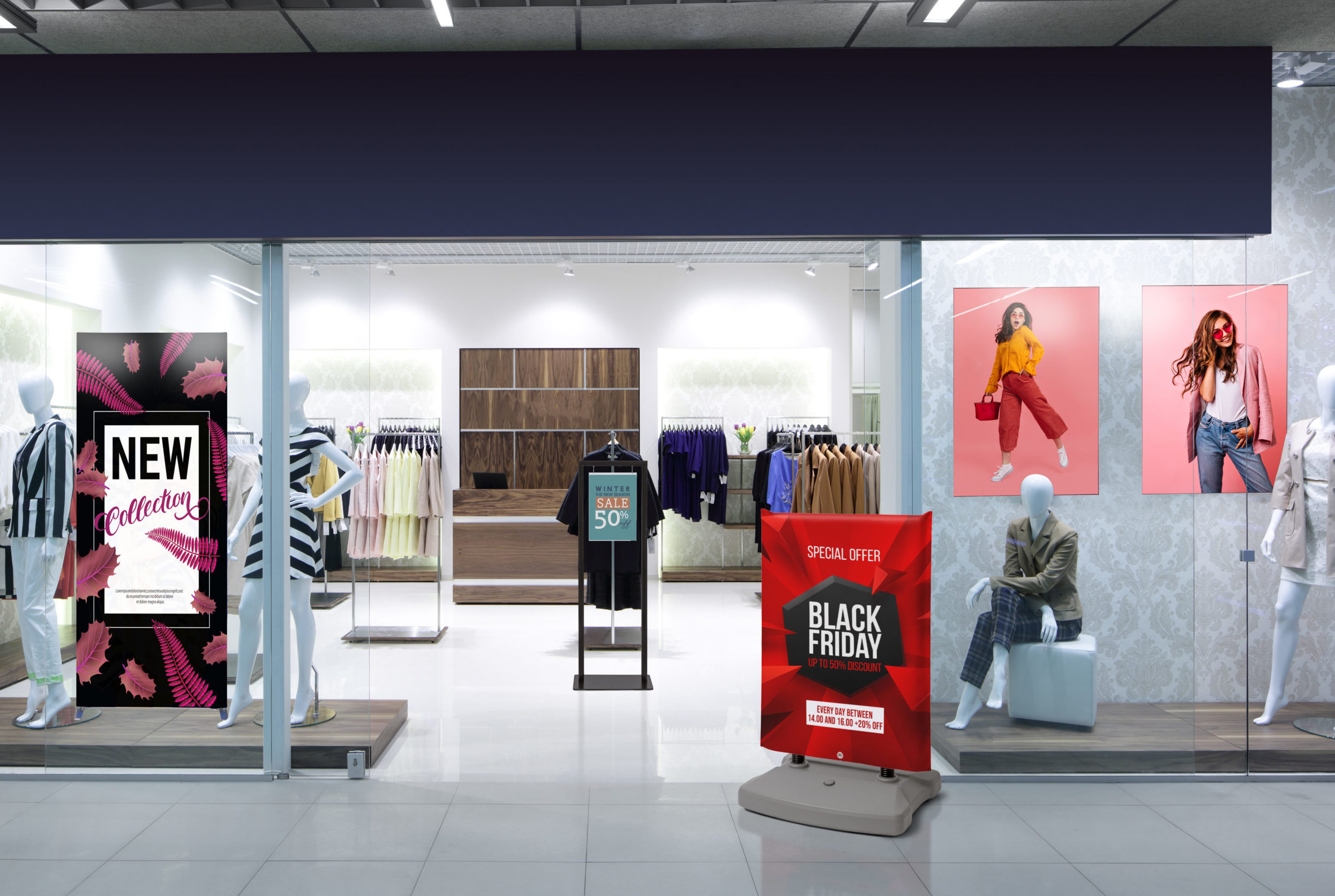 Ať už působíte v jakémkoli odvětví, máme pro vás řešení. Vybavte si obchod, kancelář nebo jakoukoli místnost naším novým a nejtenčím Textilním propínacím rámem Elegant Black k zavěšení na zeď. Hledáte spíše volně stojící reklamní produkt? Skvělým řešením pro vás budou Plakátový stojan Swing či Menu Board Design. Chcete svou značku nebo reklamu ještě více zviditelnit? Vyberte si Interiérový vlajkový stojan a vystupte zdavu. Tyto a další nové produkty pomohou vašemu podnikání!