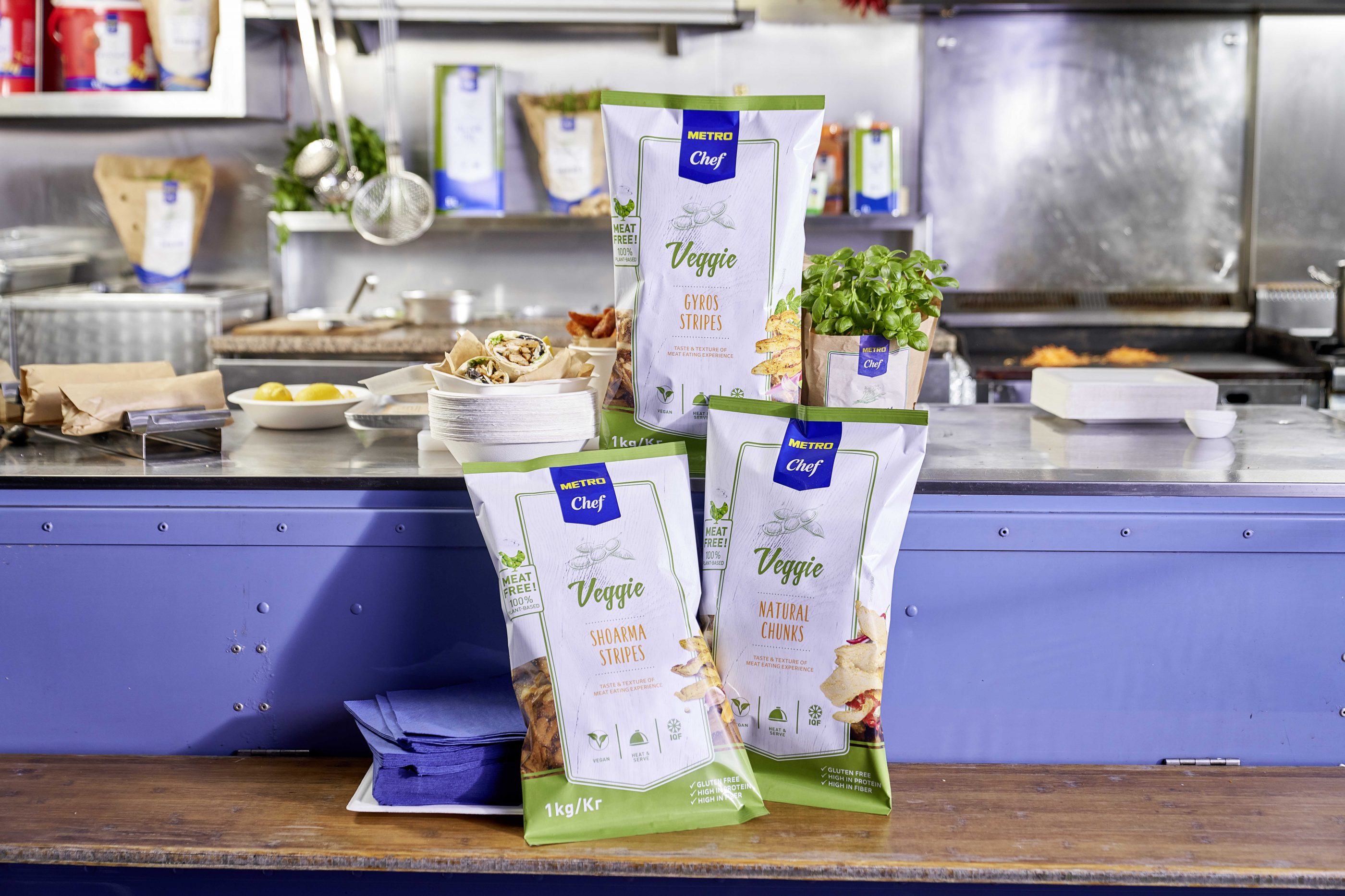 makro ČR proto představuje novou Veggie řadu rostlinných masových produktů pod vlastní značkou METRO Chef, jež nabízí výrobky primárně pro segment HoReCa. Nová řada zahrnuje několik produktů rostlinné výroby ve špičkové kvalitě – tři produkty s texturou hovězího (burger, trhané, mleté) a tři druhy s texturou kuřecího, lišící se kořením. Produkty se svou texturou, šťavnatostí i chutí blíží skutečnému masu, takže zákazník rozdíl nepozná. Díky vysokému obsahu rostlinných proteinů funguje jako plnohodnotná náhrada masa. Samozřejmostí je 100% veganské složení bez obsahu geneticky modifikovaných organismů (GMO) a lepku. Jsou tak ideální alternativou pro vegany i milovníky masa, kteří se snaží redukovat jeho konzumaci, avšak nechtějí přijít o požitek z jeho chuti. Díky svému složení obsahují výrobky z nové Veggie řady méně nasycených tuků než živočišné výrobky. Jsou tak vhodné pro všechny, kteří se snaží o stravu s vysokým obsahem vlákniny nebo nízkosacharidové stravování.